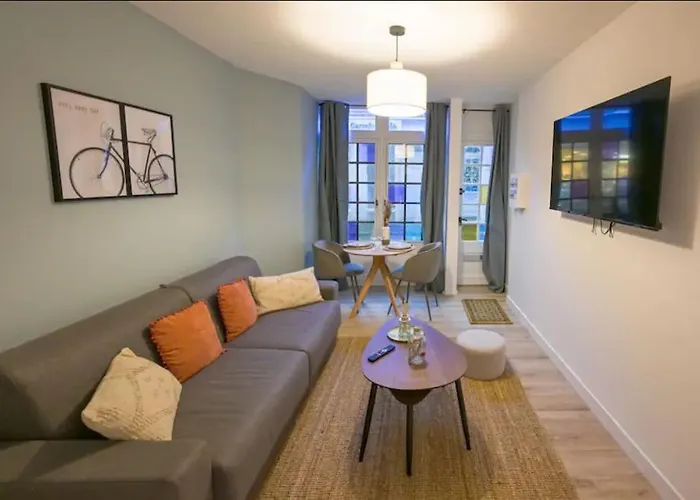 The 15 m² La Petite Parenthese -Studio - Bain A Bulles - 250M Plage Etretat is located only 0.7 km from Etretat's Cliff and around a 25-minute walk from Chapel of Our Lady of the Guard. Welcoming guests with a hot tub, this 1-bedroom apartment lies in close proximity to the Cliffs of Etretat.